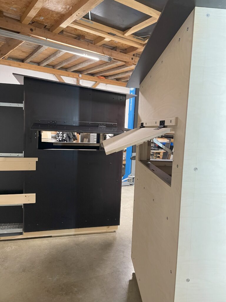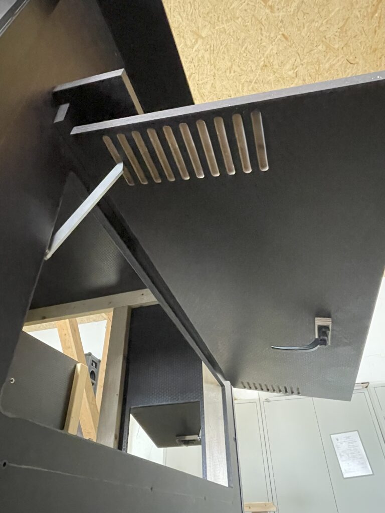 Für den Bau der Kanzel werden 15 mm starke Siebdruckplatten (BFU100) verwendet, die witterungsbeständig sind und den Anforderungen der Norm EN 636-3 für den dauerhaften Einsatz im Außenbereich entsprechen.