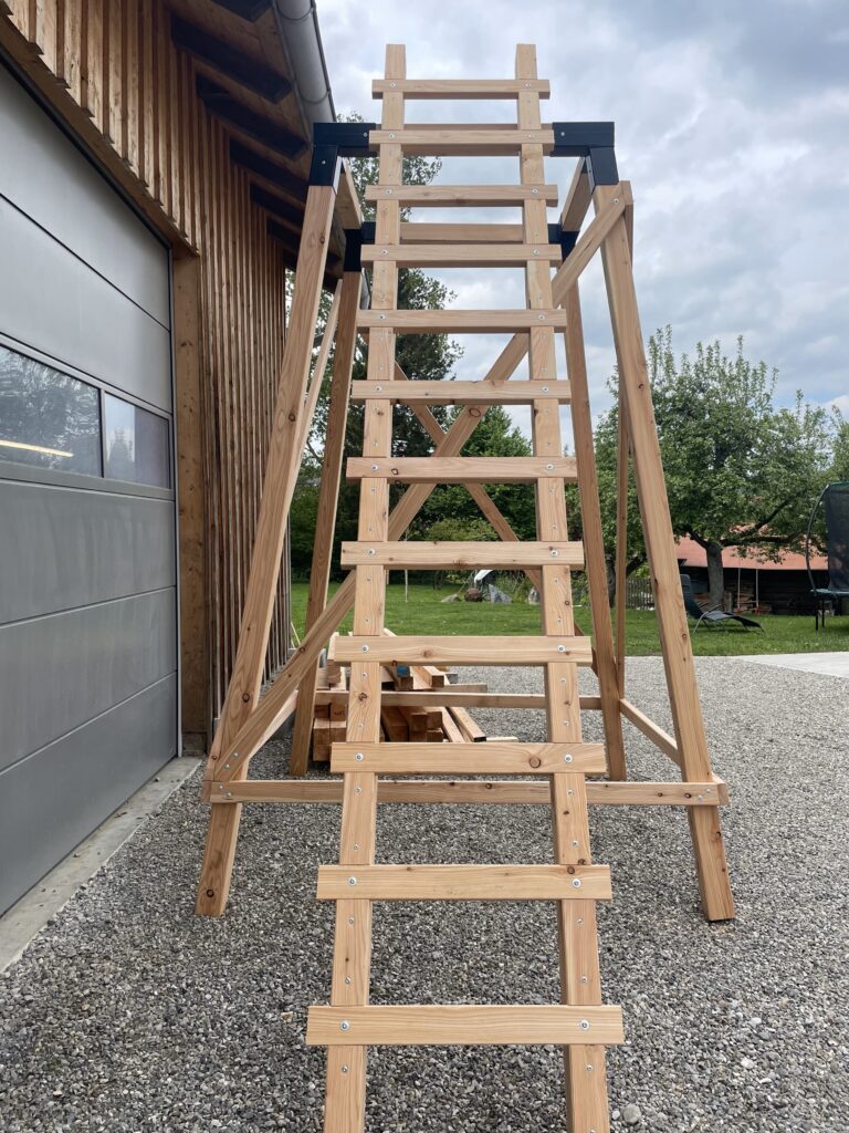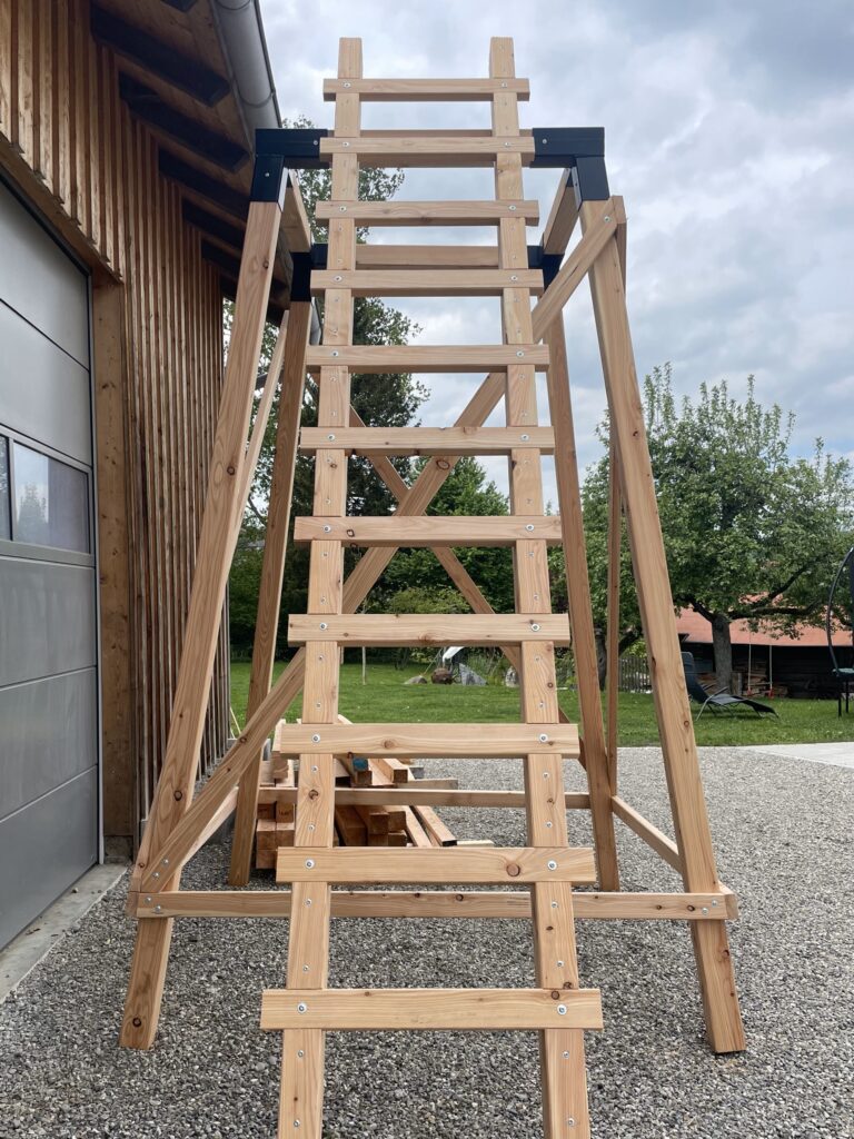 Stabile Ausführung mit 8×8 cm Stehern und 4×8 cm Verstrebungen.