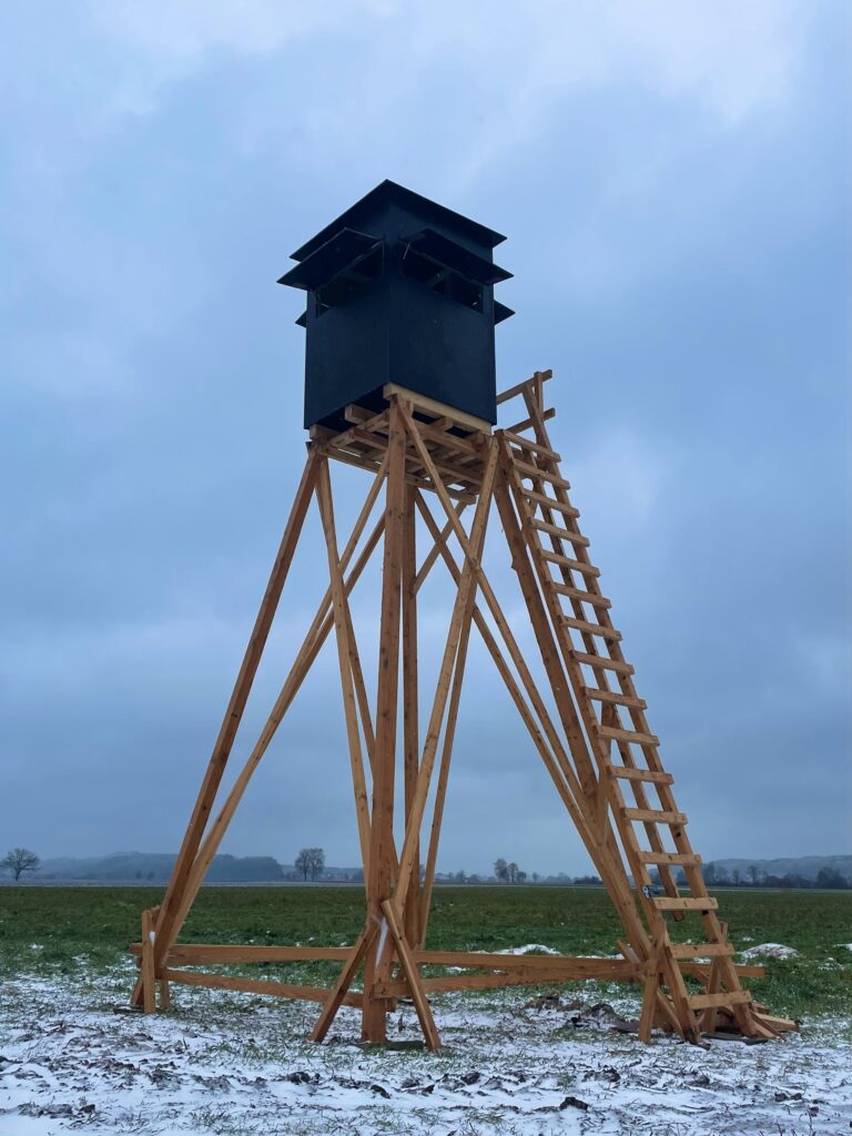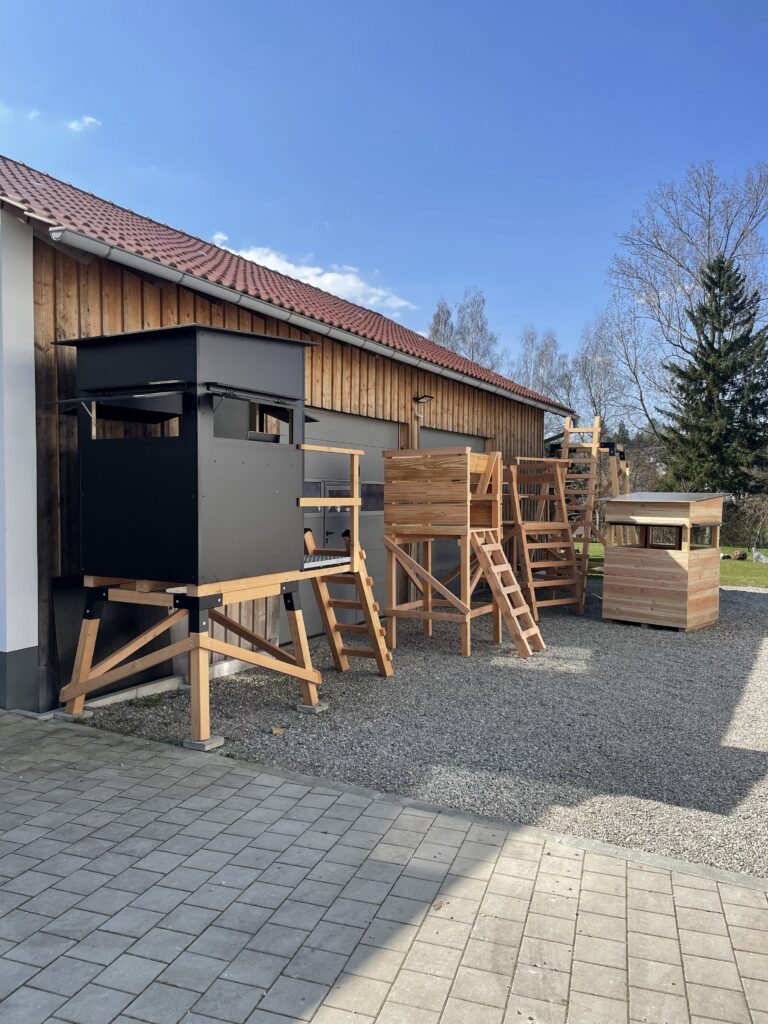 Vor Ort können verschiedene Kanzeln, Unterbauten und Drückjagdstände besichtigt werden. Besonders hervorzuheben ist unsere Muster-Kanzel im eigenen Revier, die einen direkten Eindruck von Qualität und Funktionalität vermittelt.